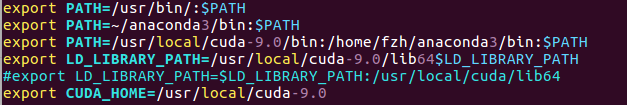 export PATH=/usr/local/cuda-9.0/bin:/home/fzh/anaconda3/bin:$PATH