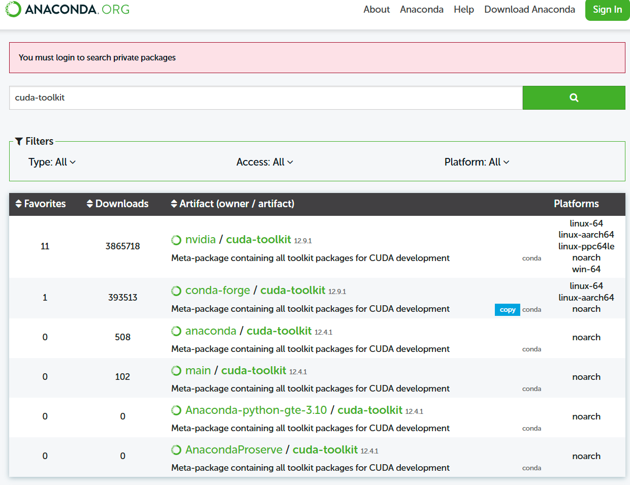 conda search cudatoolkit